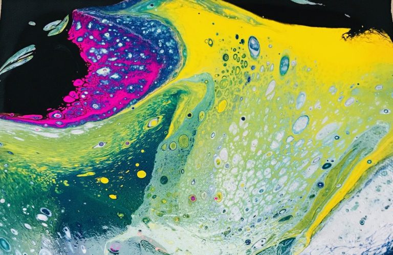 Der Begriff "pouring" kommt aus dem englischen und bezeichnet eine Technik, bei der die Farben nicht mit dem Pinsel aufgetragen, sondern auf die Leinwand geschüttet werden.